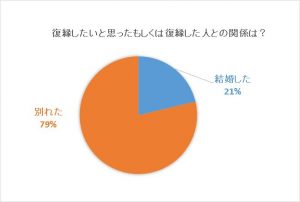 実は、結婚している人の21%は元彼との復縁結婚というデーターがあります。2013年にガールズスタイル LABOというところが、164名にとったアンケート調査結果のグラフです。
